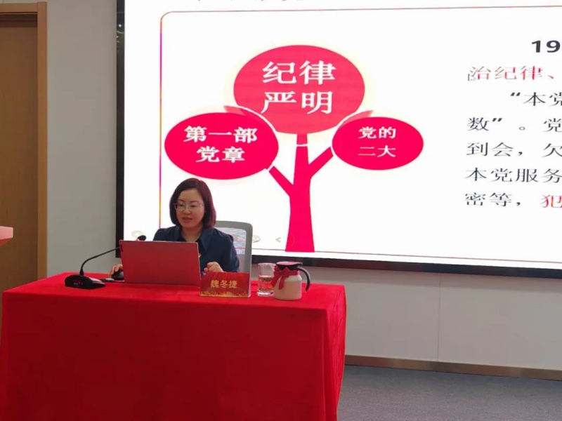 为扎实推进党纪学习教育活动走深走实,切实提高党员干部党性修养,增强纪律意识,5月31日,william威廉英国官网党支部联合三元社区党委组织开展了党纪学习教育专题党课活动,特邀省委讲师团高端宣讲专家、安徽中医药大学马克思主义学院教授魏冬捷解读《中国共产党纪律处分条例》修订内容,三元社区各党支部党员及william威廉英国官网全体党员参加了此次党课学习。